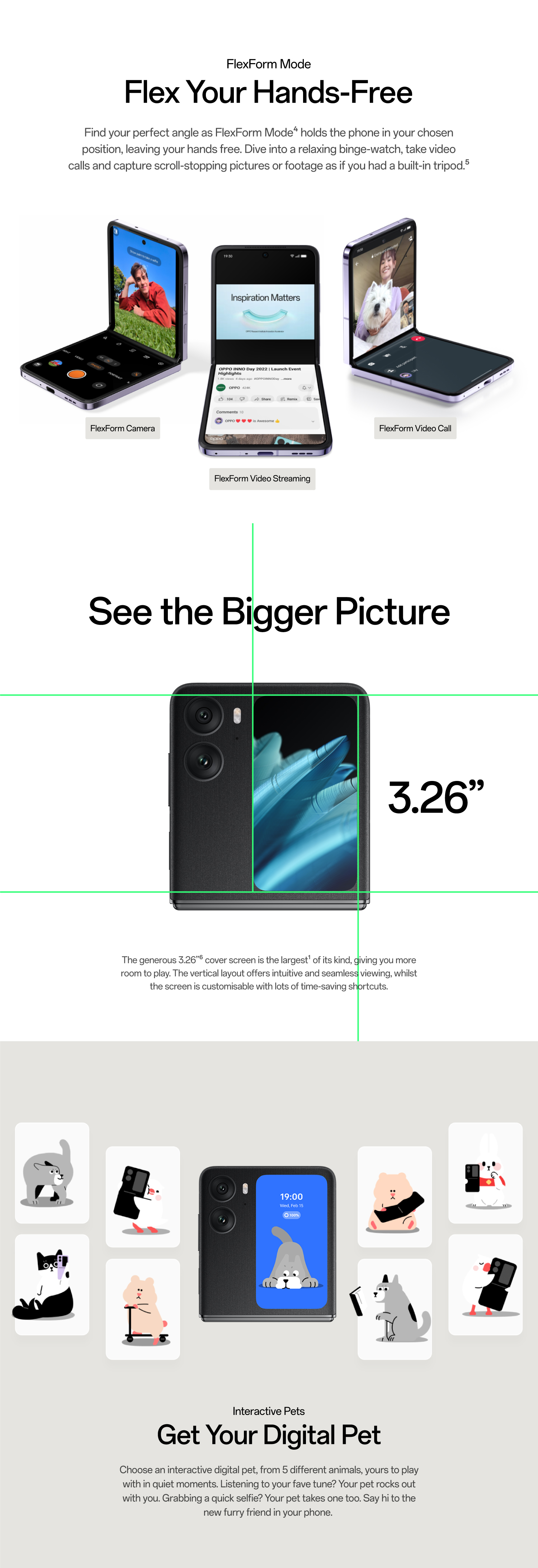 Discover the tech-savvy, style statement phone that lets you see more in a snap. The larger cover screen expands your view with innovative features, whilst the foldable design reimagines photography possibilities, all in a gorgeous and flawless design that you can pop in your pocket.