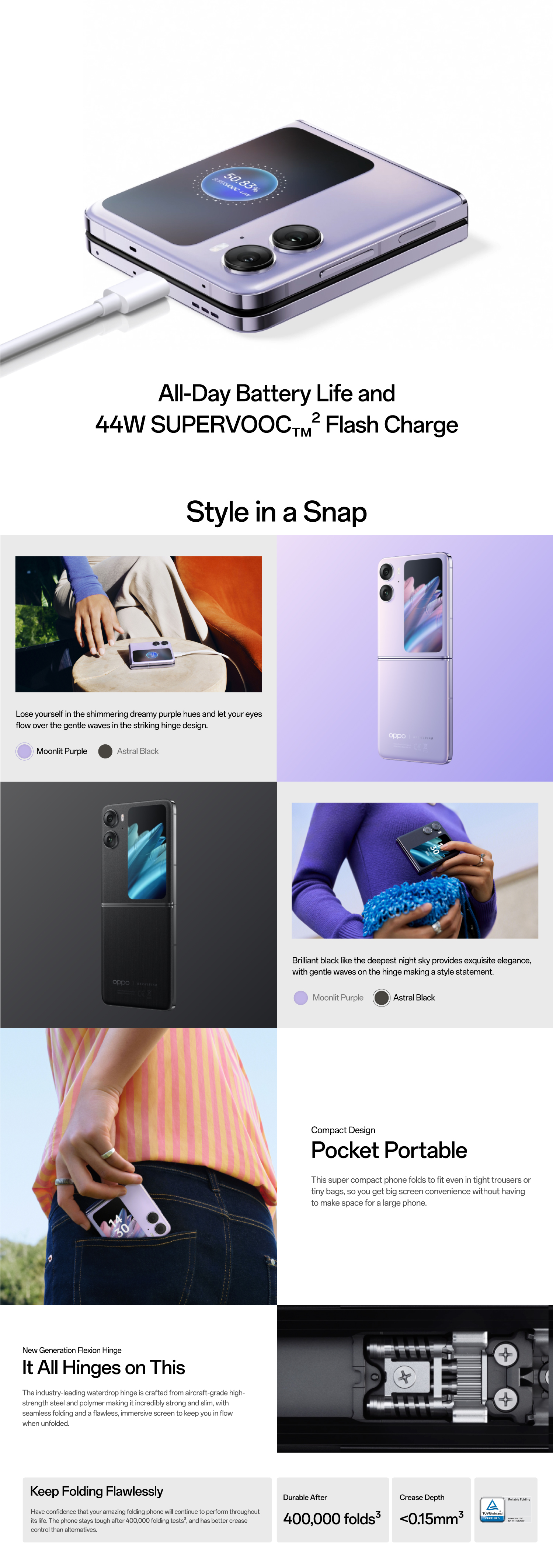 OPPO FIND N2翻盖/超大盖屏/柔性铰链/精致的口袋设计/最强的电池性能
